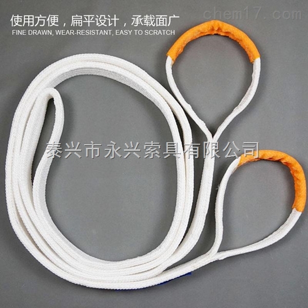 泰興永興索具有限公司可以根據(jù)客戶需要制作單層,多層,四層的扁平環(huán)形吊索,它們由聚酯、尼龍和丙綸中的一種原料制作而成,本公司可以提供安全系數(shù)是6:1的各種產(chǎn)品。產(chǎn)品符合標(biāo)準(zhǔn)安全要求,客戶可以根據(jù)自己的需要訂購特殊長度的產(chǎn)品。扁平吊帶輕便、柔軟、安全系數(shù)高、使用壽命長、不導(dǎo)電,無觸電危險(xiǎn),對腐蝕有很好的抵抗力等優(yōu)點(diǎn),正逐步替代鋼絲繩索具和鏈條索具。