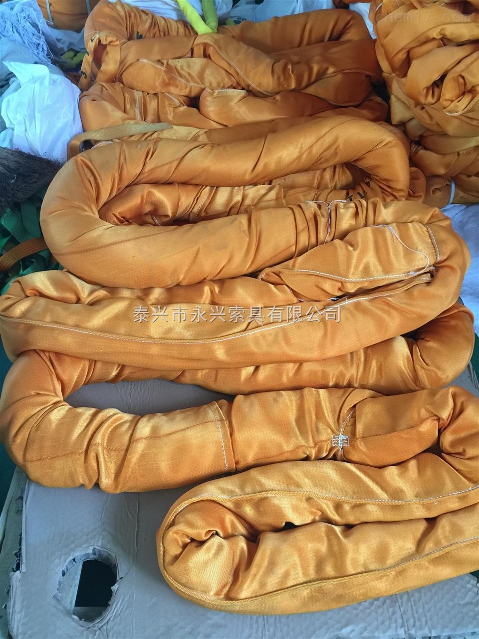 3、圓形吊索易受機(jī)械、 化學(xué)、 高溫?fù)p傷、假如保護(hù)層嚴(yán)重破損,這樣吊索不得使用