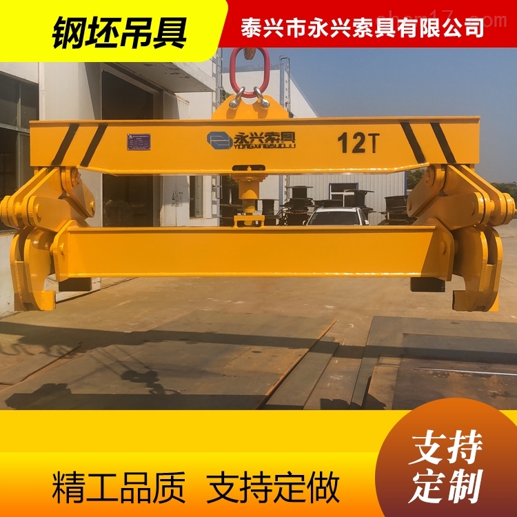 吊梁:吊梁是與天車鉤相連的部件,有吊環(huán)卸扣式聯(lián)接、吊索具式聯(lián)接和吊耳式聯(lián)接三種結(jié)構(gòu)。吊環(huán)卸扣式聯(lián)接吊軸,使吊具的受力情況改善,同時(shí)也避免了裝卸鋼坯時(shí)的脫鉤現(xiàn)象,降低了夾具本身的高度,有利于低矮的場(chǎng)所使用。吊索具式聯(lián)接吊軸,使夾具的受力較好,但吊具自身的高度大,需在高大的場(chǎng)所使用,在掛吊鉤時(shí)需用人工進(jìn)行輔助掛鉤。吊耳式聯(lián)接吊軸,可由吊車司機(jī)直接掛鉤, 但在吊裝作業(yè)時(shí)需使吊具著地,并下放吊鉤直至不受力為止,這樣,易導(dǎo)致吊車鉤脫鉤。